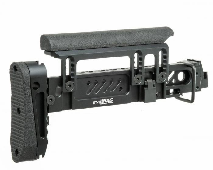 New generation LCT PT-1 AK buttstock "Klassika". CNC machined aluminum construction. Telescopic, 20 length positions, 5 cheek riser positions and 6 buttpad positions. Folds to the left.