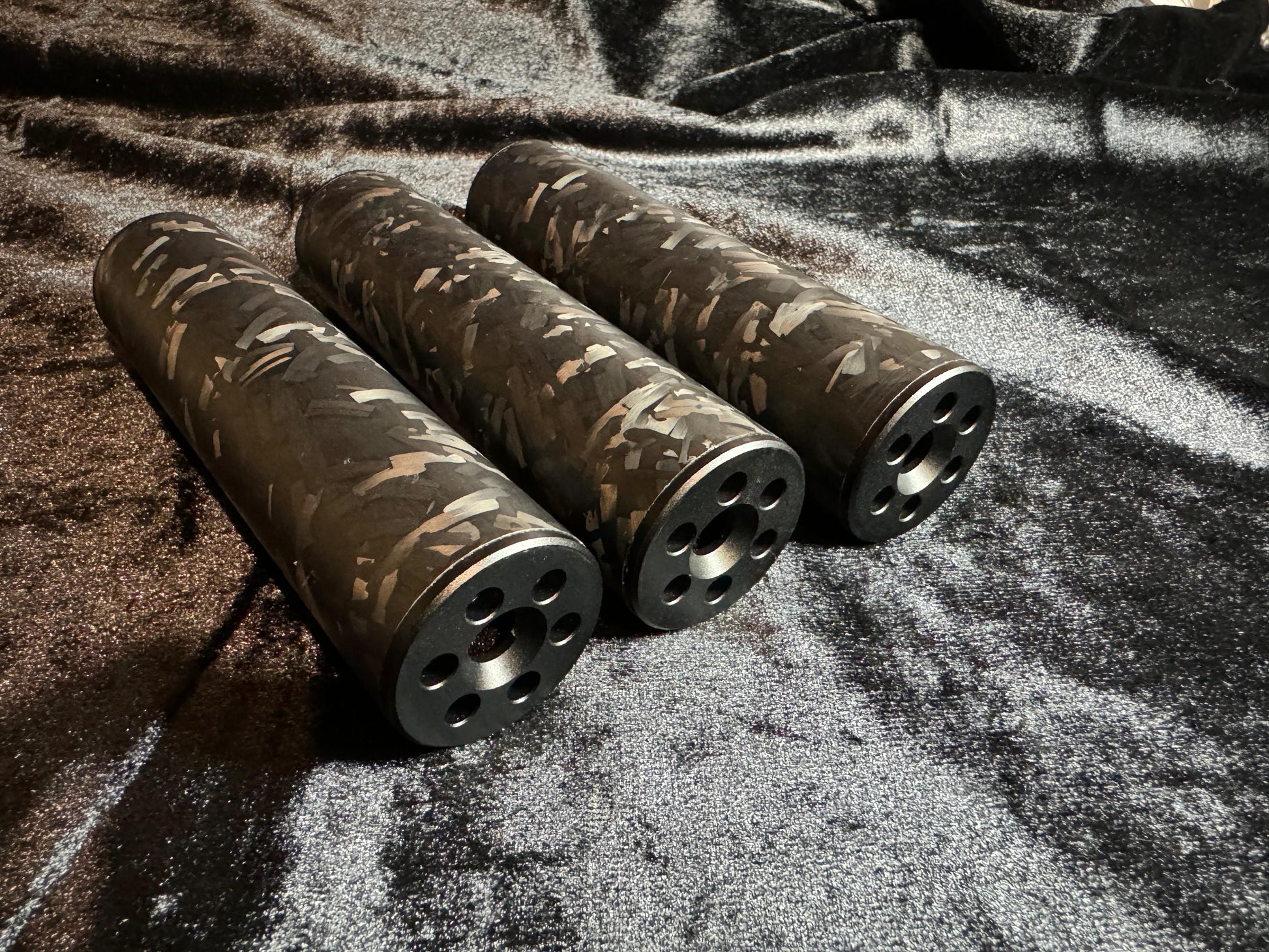 Upgrade your airsoft setup with the OG Carbon ADAPTIVE 40 Forged Carbon Suppressor, engineered for performance and aesthetics. Made from high-strength forged carbon fibre, this lightweight airsoft suppressor offers superior durability without adding unnecessary weight to your build. The ADAPTIVE 40 design features a universal 14mm CCW thread, making it compatible with most airsoft rifles and pistols. Designed for both tactical realism and barrel protection, it enhances your loadout with a sleek, low-profile look. Ideal for all airsoft players that want the edge, this carbon fibre airsoft suppressor delivers the ultimate blend of form and function and is one of the lightest suppressors on the market. Â