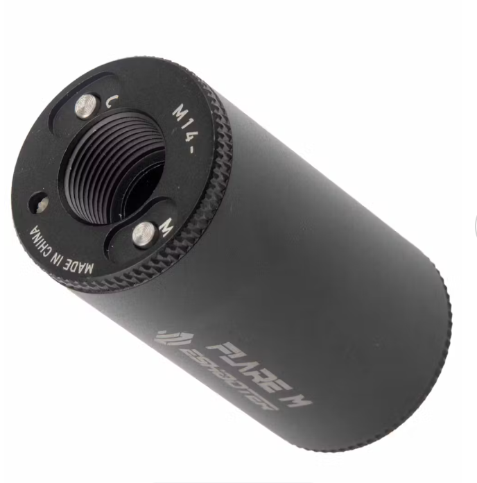 The FLARE M is ready to mount on any 14mm CCW male threaded outer barrel right away, though the instructions recommend that your inner barrel does not protrude more than 10mm from the tip of the threading. Also included in the box is an 11mm CW female thread adapter, allowing you to mount the FLARE M to a WE or Armourer Works pistol and take advantage of its compact, pistol-friendly nature. If you run a RAVEN or VORSK pistol, use a12mm CW to 14mm CCWadapter to mount the Flare M. Novritsch or Army Armament pistol owners, no need to feel left out, use a12mm CCW female thread adapter and you can rock the FLARE M too!