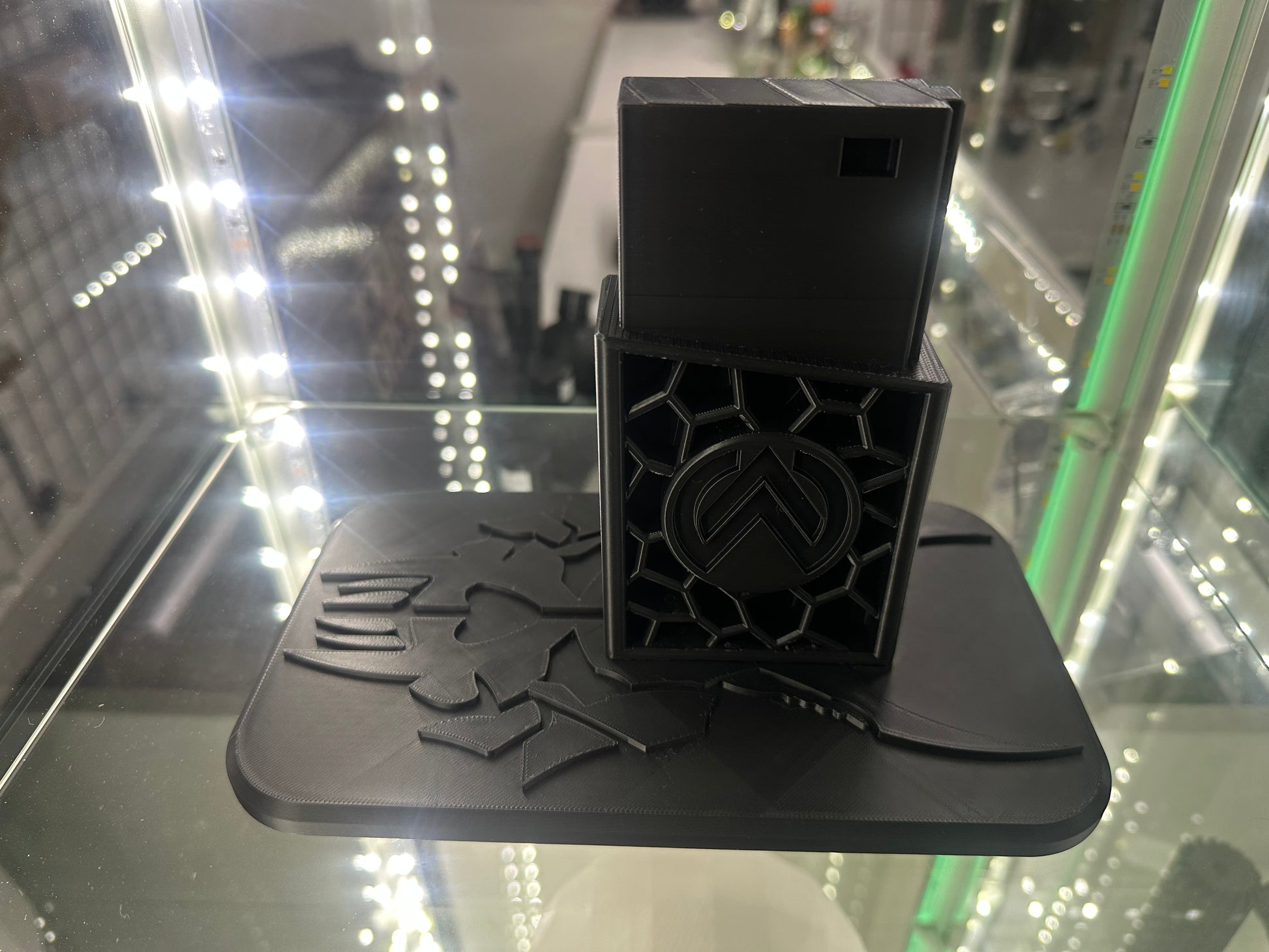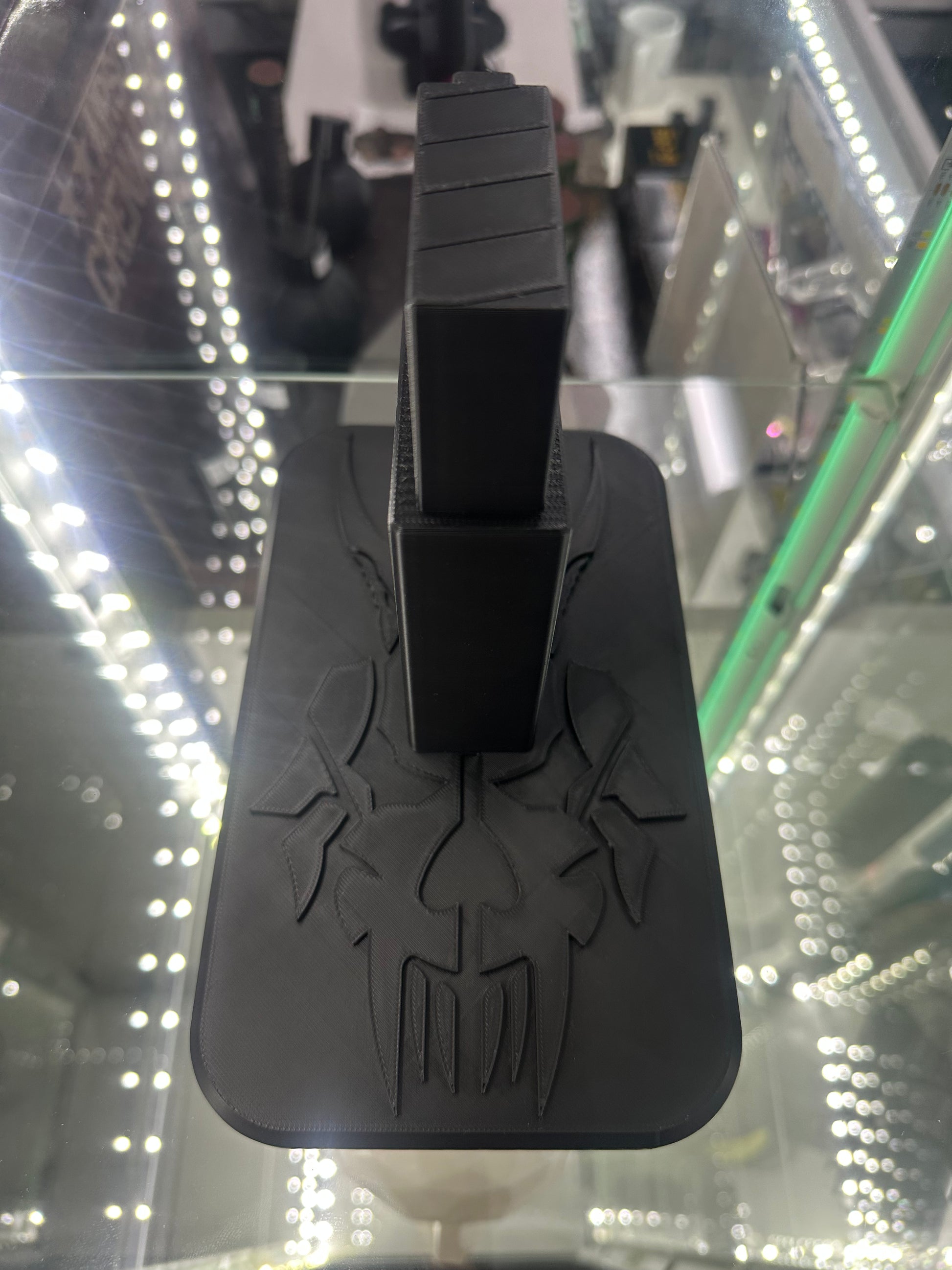 This is a 3D printed MTW rifle stand. This has the MTW logo on the stand.