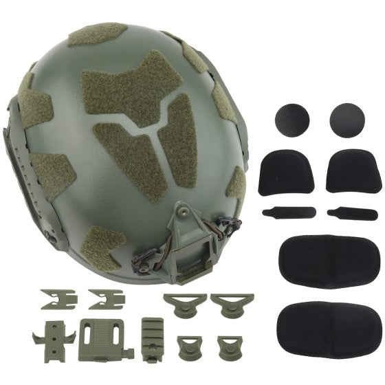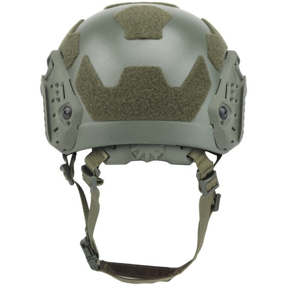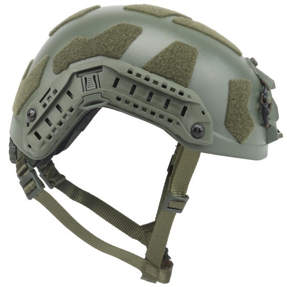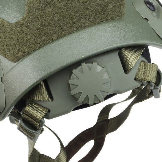 Manufactured from durable Polypropylene and internally padded with thick sponge cushions for comfort. The helmets roughed surface provides low reflectivity, keeping you hidden when prowling the outer edges of the airsoft field. A forward mount for Cameras/ NVGs as well as side rails for further accessories ensure this helmet is ready for when you want to go ‘tactical’. The side rails also feature 'buckle holes' to be used with compatible face protection. Internally, a deep-cut band has been provided in the top to allow the helmet to be used with a variety of communication headsets. Plenty of Velcro strips are mounted to the outside for you to ‘pin your colours’ with your collection of Airsoft Patches.