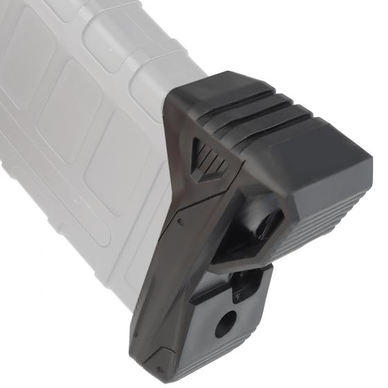 Features a grooved base that can be used for weapon stability when prone, or as a stand for displaying your magazines at home.