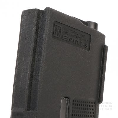 The baseplate of the EPM1 has also been completely redesigned. The slide-in design makes the baseplate more durable and resistant to damage or popping off if the magazine is dropped. It is also significantly slimmer than the first generation EPM's so stacking the magazines in pouches or during storage takes up less space than before. The basepad's heel is angled to be able to act as a monopod during supported shooting and, as before, a marking matrix is incorporated into the basepad for magazine identification use. The ribbed front ledge that provides positive indexing of the magazine when drawing from a pouch or plate carrier is now incorporated into the EPM1's main body.