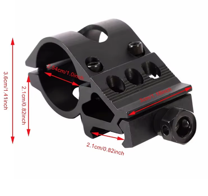 45 degree offset side mount fits all tactical flashlights or laser sight with 1 inch diameter tube.