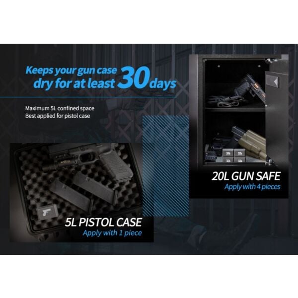 Provides dehumidification for 5 L confined space, such as pistol case, ammo box, optics and fits in any small space. Invisible can be simply renewed by microwave or oven for repeatedly usage. Having issues with small space dehumidification, don’t miss this little guy.