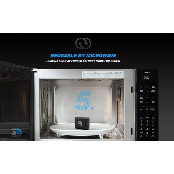 SILENT DRY Dehumidifier stones can be renewed by either microwave or oven to achieve reusable functionality. Based on testing and measurement results, it can be renewed at least one hundred times.