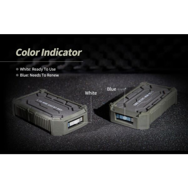 Provides dehumidification for 20 L confined space, such as rifle case/bag, tactical backpack and storage for your gear, with a color indicator that changes based on the internal humidity status. PIONEER can be simply renewed by microwave or oven for repeatedly usage.