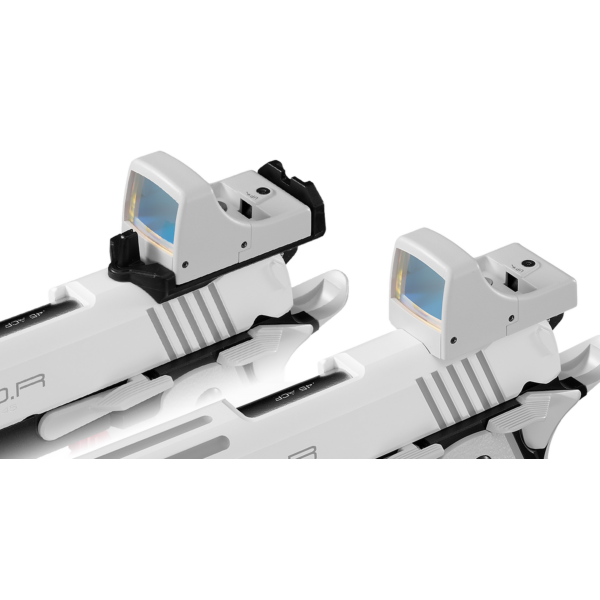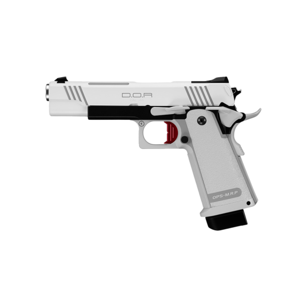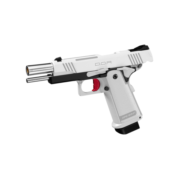 DOR stands for Direct Optics Ready, and the white monotone version of the "Hi-Capa DOR". This model showcases sophisticated coloring using a variety of painting techniques, offering a stylish alternative to the typical rugged appearance of the standard "Hi-Capa DOR".