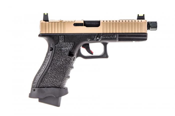 The TACTICAL option features a full-weight Aluminium Alloy Slide that features deep-groove ridge cuts on the forward & rear slide sections to help improve slide grip when racking your first BB. Colour choices are more reserved for the TACTICAL options, with all of the furniture & frame remaining black when choosing different slide colours (excluding GOLD & CHROME that have their furniture in the same colour as the slide).