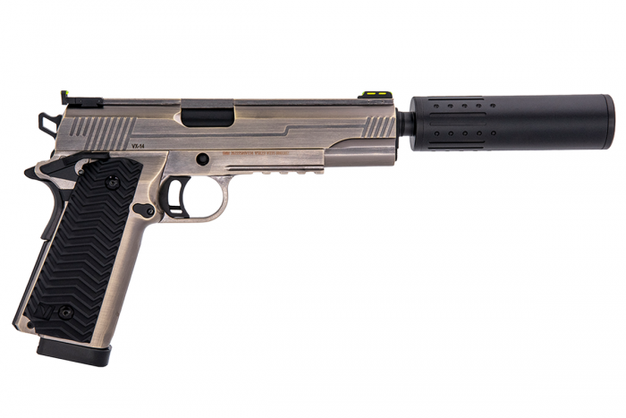 With modern pistol features such as fibre sights, polymer grips and contemporary styling all applied to the typically traditional, 1911 frame profile - the VX-14 is bound to be a head-turner in the safe-zone whilst being an effective sidearm on the field.