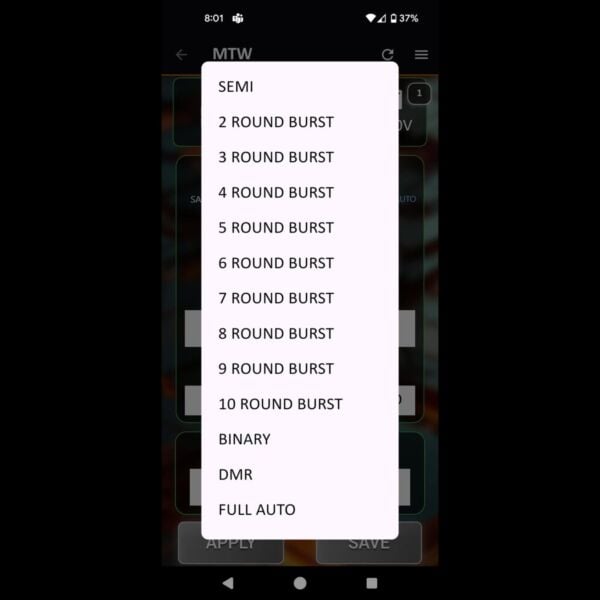 - Assign any fire mode to any selector position including semi, 2-10 round burst modes, full-auto, DMR mode and binary!